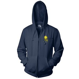 Navy Zip Up Hoody with embroidered Smiley Cross Bones